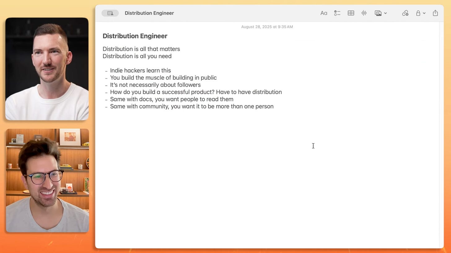 Once you have distribution you can share and test ideas instantly. Having distribution is the biggest advantage you can have in the new AI world.